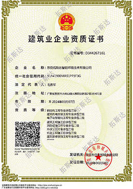 现有资质:建筑机电安装工程专业承包一级,以及钢结构工程专业、电子与智能化工程专业、建筑工程、环保工程专业、机电工程、建筑装修装饰工程、消防设施工程等专业资质。现有团队300余人,含销售,设计,资深设计,项目运营团队200余人(中高级工程师,一级/二级建造师),采购团队,后台支撑管理人员,长期协作专业施工团队1000余人。